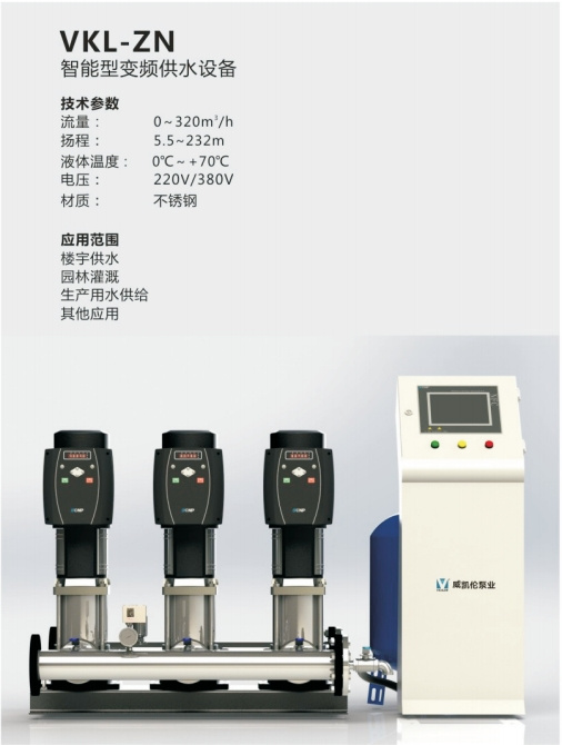 菜单产品中心Product center 热门产品 →CDL,CDLF系列轻型立式多级离心泵 →NiSO,NiS,NiSF系列端吸离心泵 →TD系列管道循环泵 →VKL-HY恒压变频供水设备 您的位置:首页 →产品展示 < > VKL-ZN智能型变频供水设备关键词: 简介: 在线咨询 返回列表 产品说明 相关产品 CDL,CDLF系列轻型立式多级离心泵 NiSO,NiS,NiSF系列端吸离心泵 TD系列管道循环泵 VKL-HY恒压变频供水设备 VKL-WF-1管网叠压(无负压)变频供水设备 VKL--WF-2管网叠压(无负压)变频供水设备